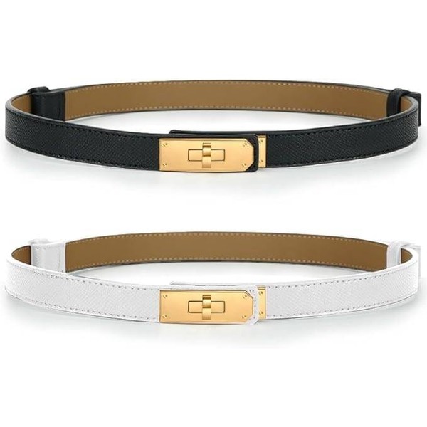 CEAUZY Womens Leather Belts For Jeans Dresses Pants Skinny Waist Belt with Adjustable Gold Turn-Lock Buckle, 2 Packs