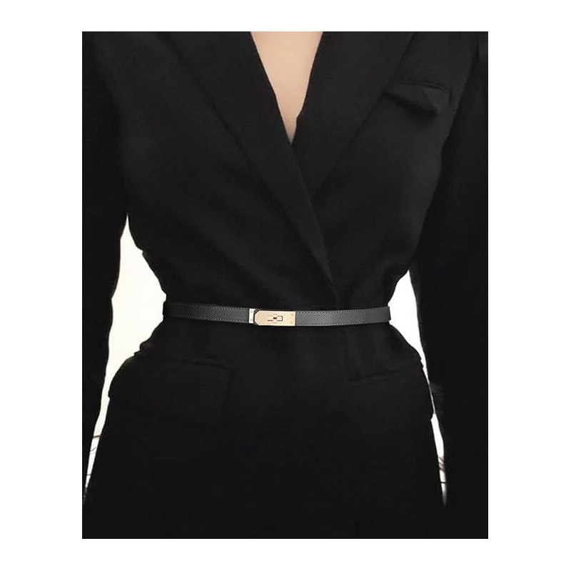 - Fashion Gold Belts for Women: This thin belt for women exudes grace and elegance, designed with a slim profile and it can easily tighten your waist, accentuating your curves and adding a touch of elegance to any dress or outfit. the gold metal fastenings add delicate details that accentuate the texture of the belt. The convenient turn-lock closure ensures a secure hold.