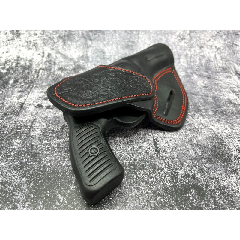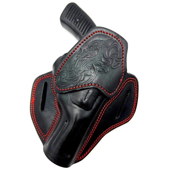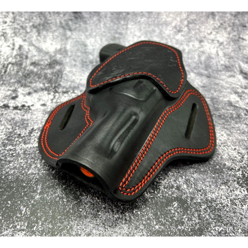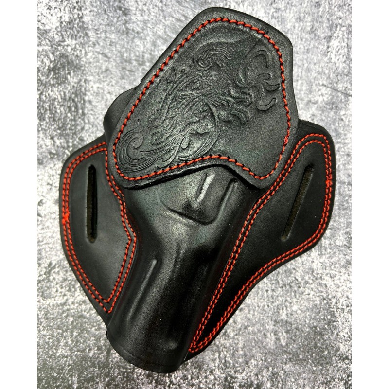 Cebeci Arms For 3" TAURUS 942, Right Hand Black Red Leather Western OWB Belt Holster