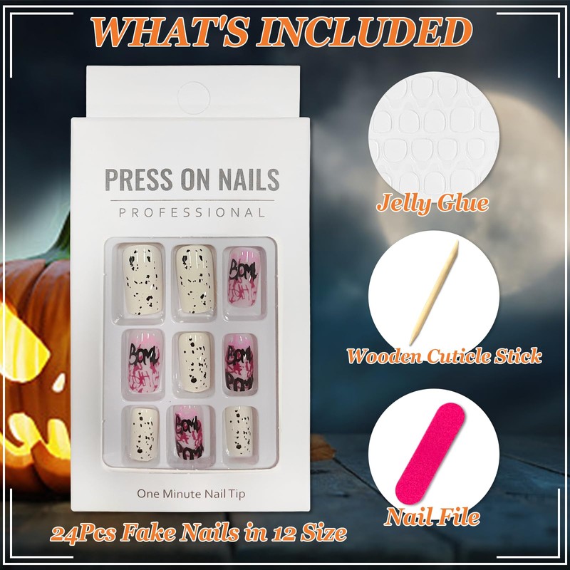 - Various patterns and sizes: cute artificial nails press on nails are available in 12 different sizes. No matter what shape your nail is, you can choose the most suitable artificial nail for you. 9 Halloween designs with artificial nails to choose from, including many classic Halloween elements: spider web, ghost, pumpkin, scar, spider. Treat yourself to a cheerful Halloween season this year!