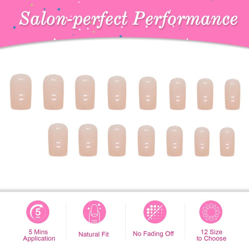 - Easy to use: choose the nail piece that suits you, polish and clean the nails first, stick the jelly glue we give (jelly glue is not as durable as glue, but can be reused) and press the trendy nails for 10-15 seconds to get the natural manicure that girls like.