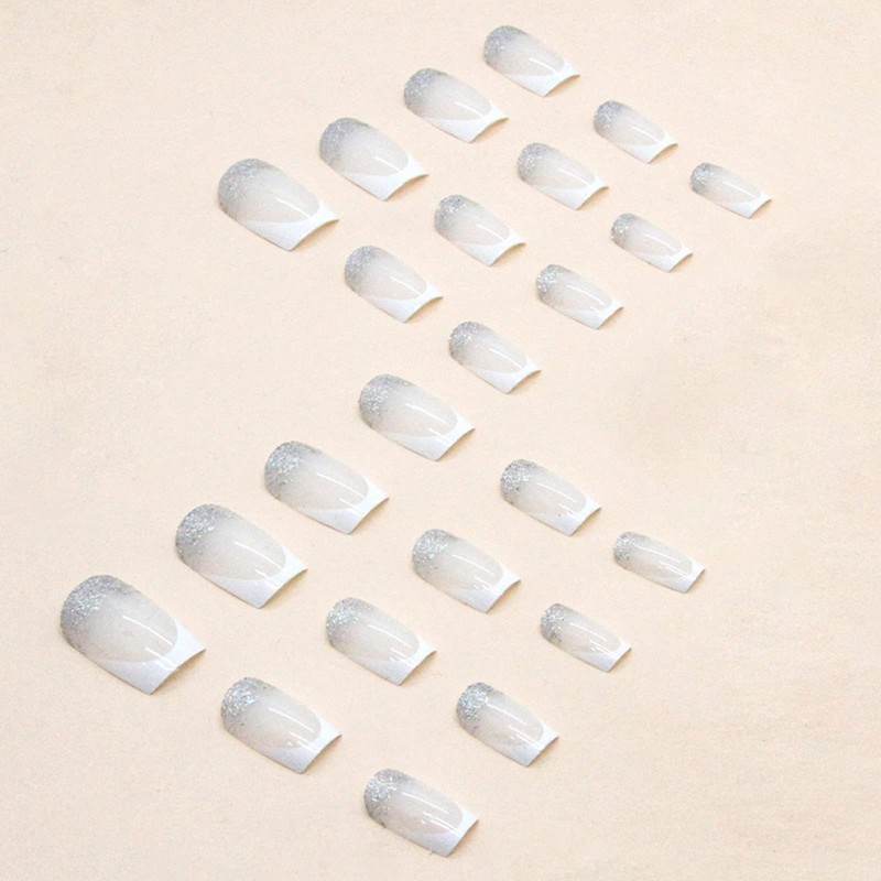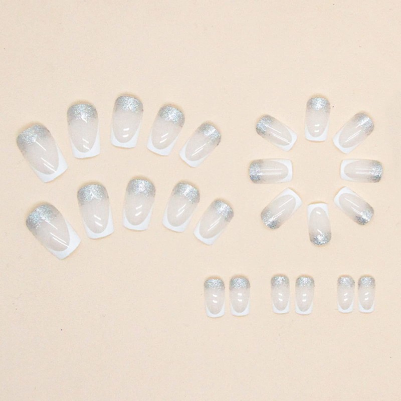 Ceboic Square Press on Nails Short, French Tip Artificial Nails Full Cover Ballerina Artificial Nails with Designs, White Glitter Acrylic Fingernails for Sticking on for Women and Girls