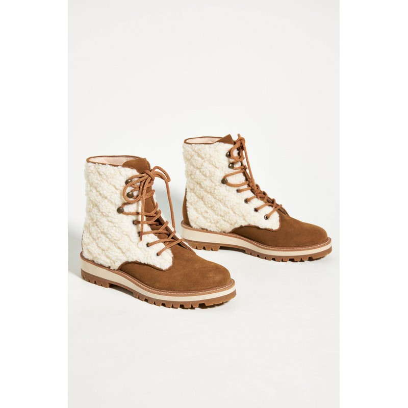 Cecelia New York River Nutella Lace Up Quilted Combat Boot Flat Ankle Booties