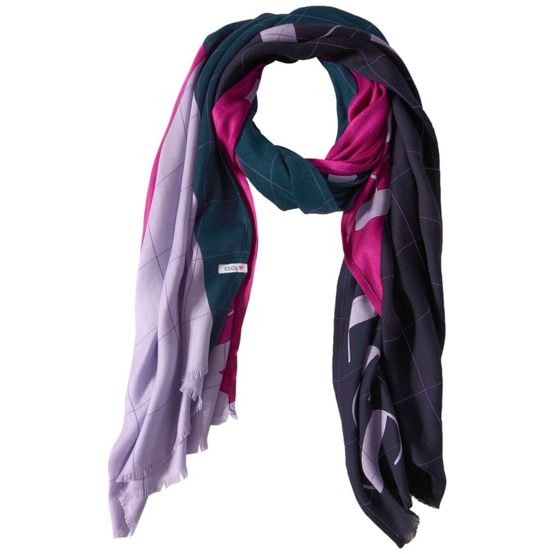 Cecil Ladies Printed Scarf, dark navy blue