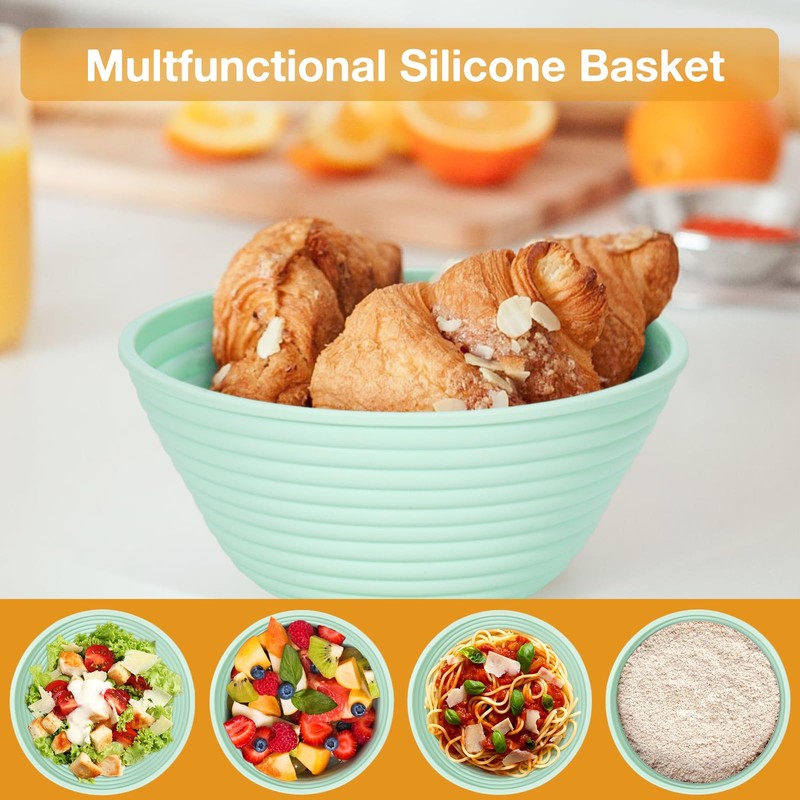 - Versatility Beyond Bread: While perfect for crafting artisanal sourdough and other breads, our sourdough proofing baskets encourage culinary creativity. Use the silicone banneton baskets as molds for salads, fruit displays, or even as serving bowls for snacks like potato chips. This multi-functional aspect broadens its appeal to a wide range of kitchen enthusiasts, homesteaders, and gift seekers looking for something unique and practical