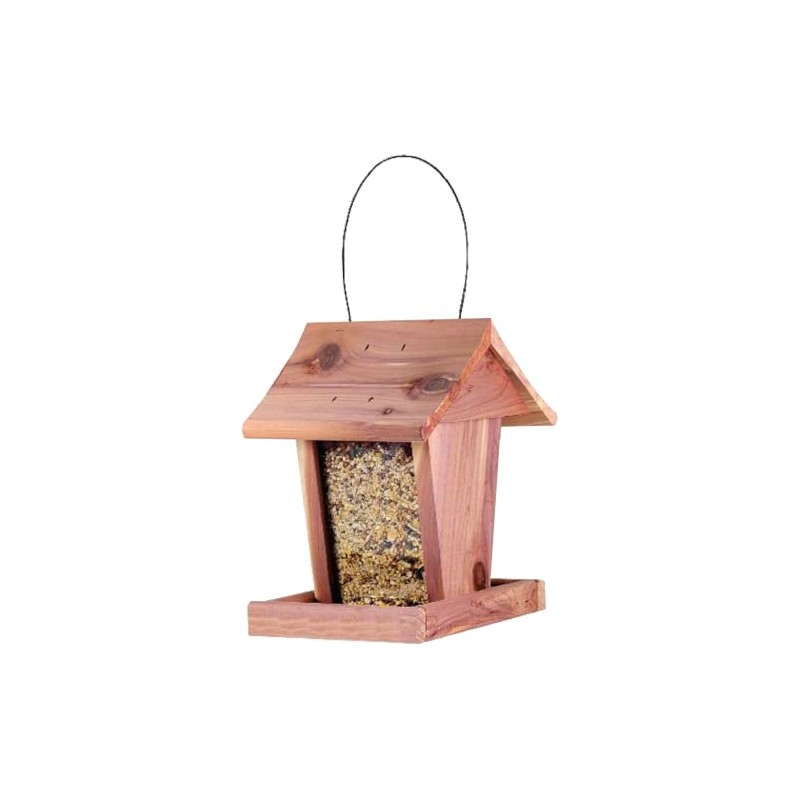 - Double-Sided Clear Windows: The Cedar Hopper Bird Feeder features clear, transparent windows on both sides, allowing you to easily monitor seed levels without needing to open the feeder. Keep track of how much feed remains at a glance and refill as needed.