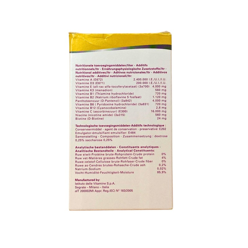 - Dissolve 5 ml CéDé Multivit in 1 litre of water (20 drops CéDé Multivit- CéDé Topvit correspond to 1 ml)
