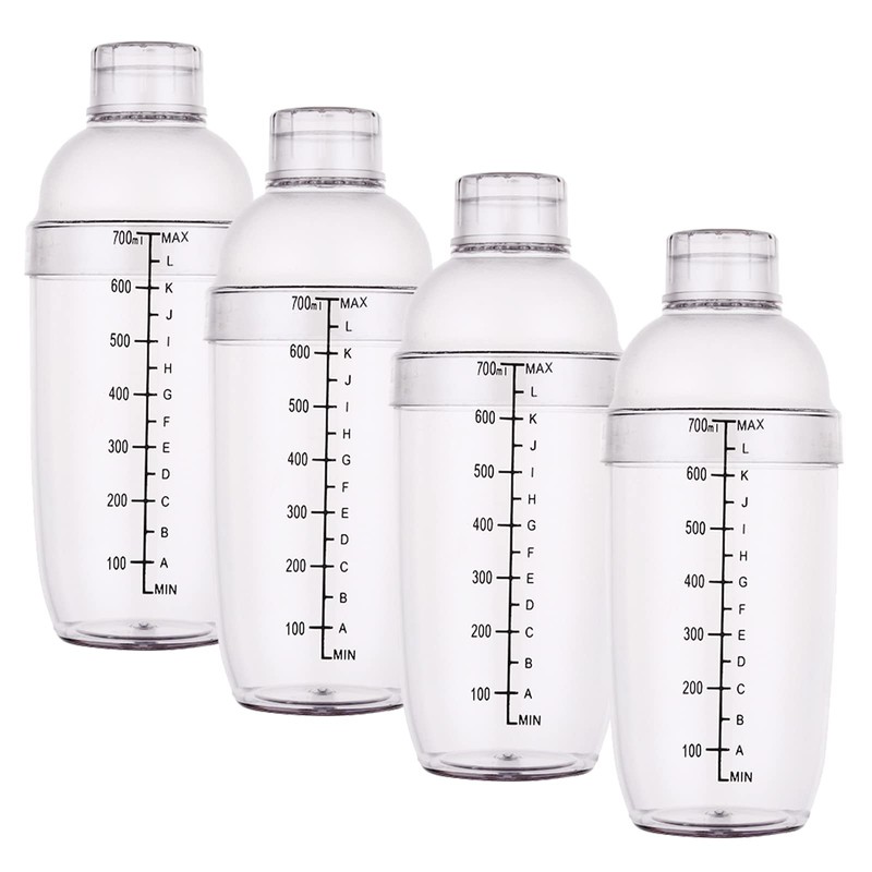 Cedilis 4 Pack Plastic Shaker Cocktail, 700cc / 24 oz Hand Drink Mixer with Scales, Bar Tool for Milk Wine Mixing
