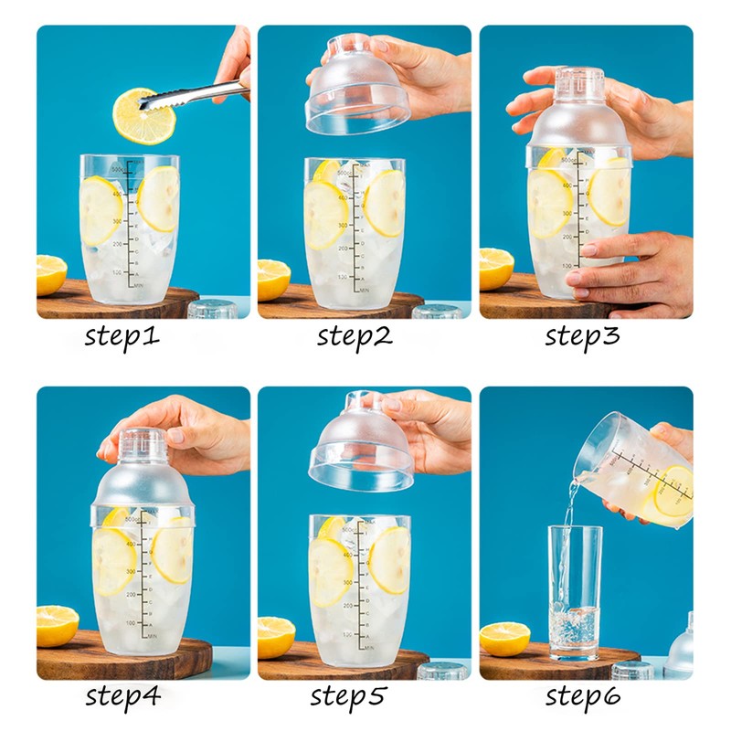 - The plastic drink shaker cups sealed good, leak-proof, help you easily make delicious beverages for all occasions. It has a clear accurate scale, printed with lacquer, not easy to fade off.