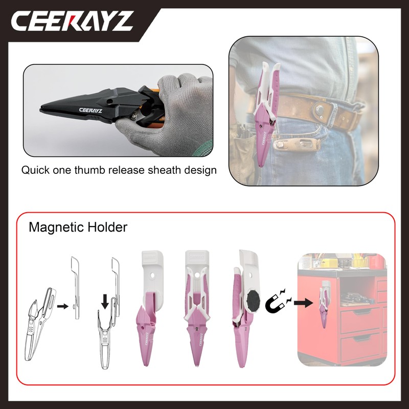 • 【Protective Sheath with Magnetic Holder】Lightweight, impact-resistant PP handle with anti-slip TPR coating for comfort and durability. Features a protective sheath with a magnetic holder, securely attaching to metal surfaces like toolboxes or workbenches for easy access and organized storage.