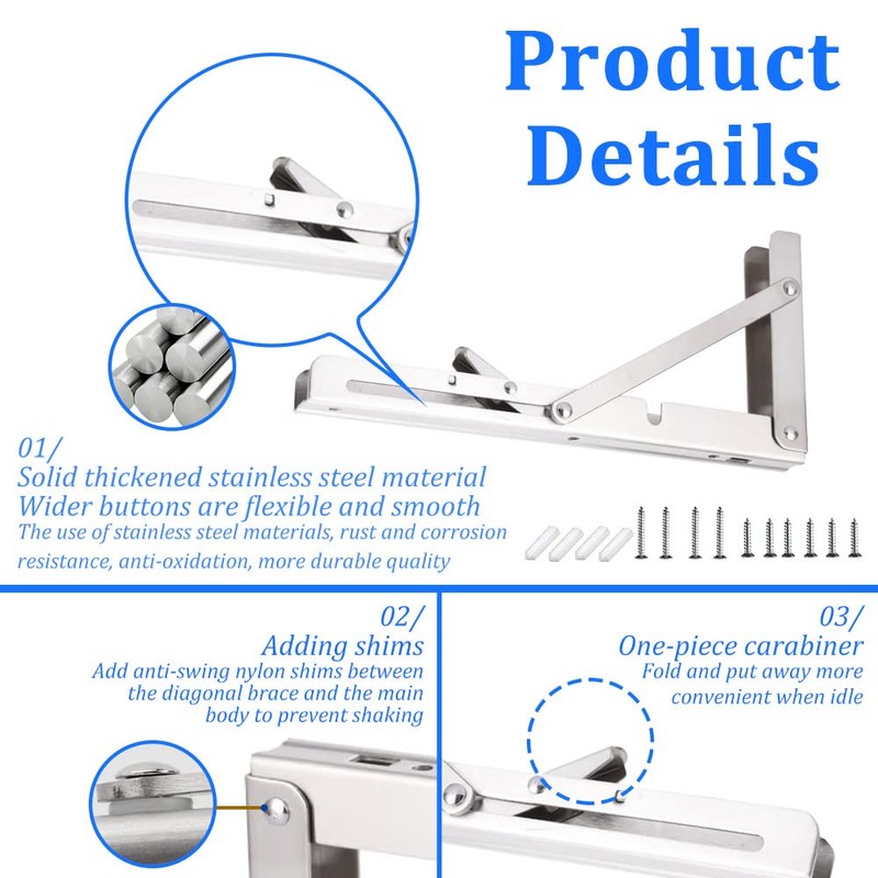 CEEYSEE Pack of 2 Folding Console 300 mm Heavy Duty Stainless Steel Folding C...