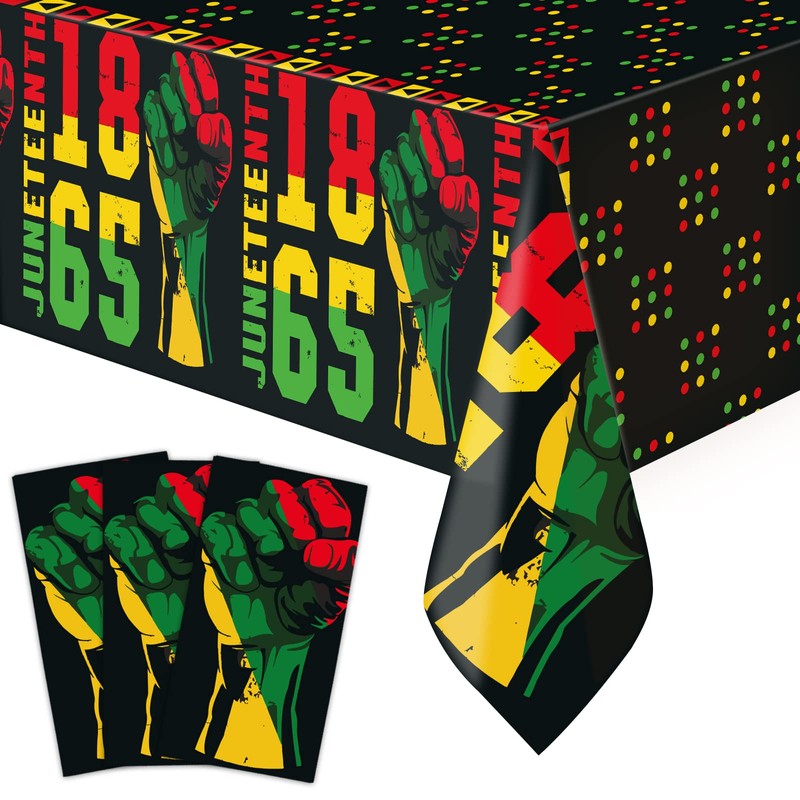 - What You Get - 3pcs Juneteenth Day Tablecloths. The size is 54 x 108 inches.