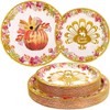 ceiba tree Fall Thanksgiving Disposable Paper Plates Party Supplies for 24 Guests Pumpkins Turkey Design Gold Foil 9 inch Dinner Plates 7 inch Dessert Plates