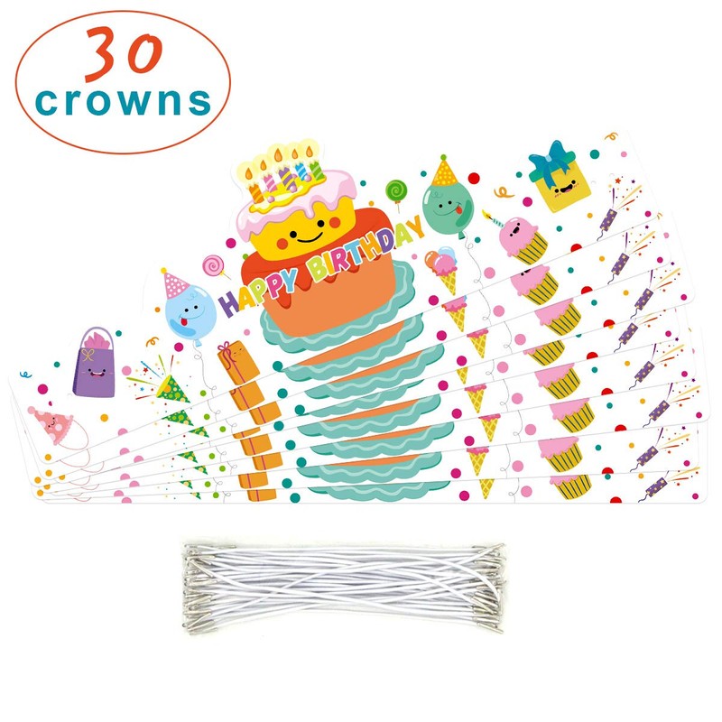 - What You Get – 30pcs Happy Birthday Crowns with elastic bands for a snug fit. Cardstock. 14.6”*5”