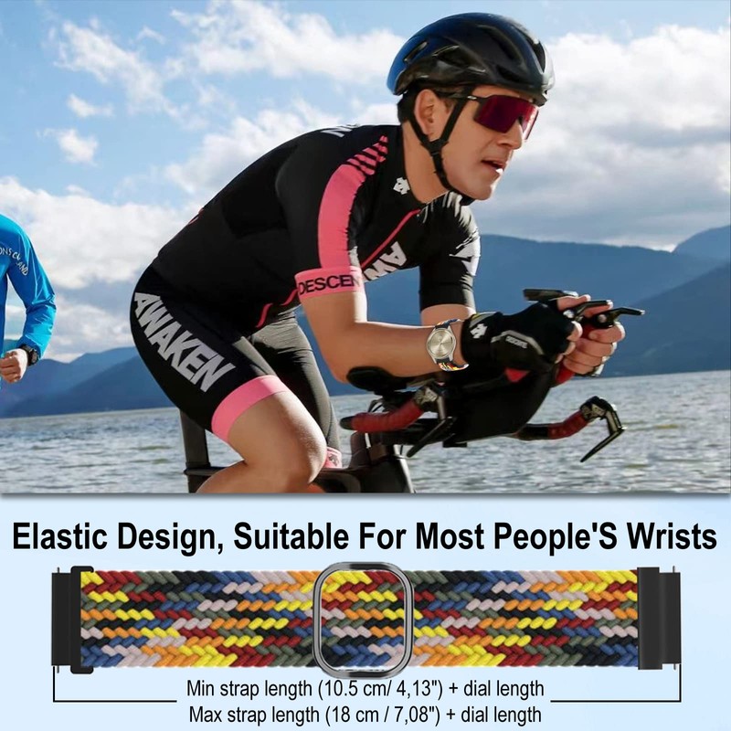 CeiBand Braided Solo Loop Elastic Bracelet, 18 mm 19 mm 20 mm 22 mm Quick Adjustable Men Women Soft Breathable Sports Bands Watch Straps Replacement Strap – Colourful