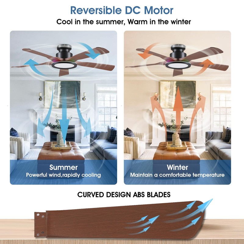 • 【Suitable for All Seasons】By pressing the F/R button on the remote control or APP, you can easily realize the forward and reverse rotation of the fan, providing year-round comfort by circulating warm air in winter and cooling air in summer.