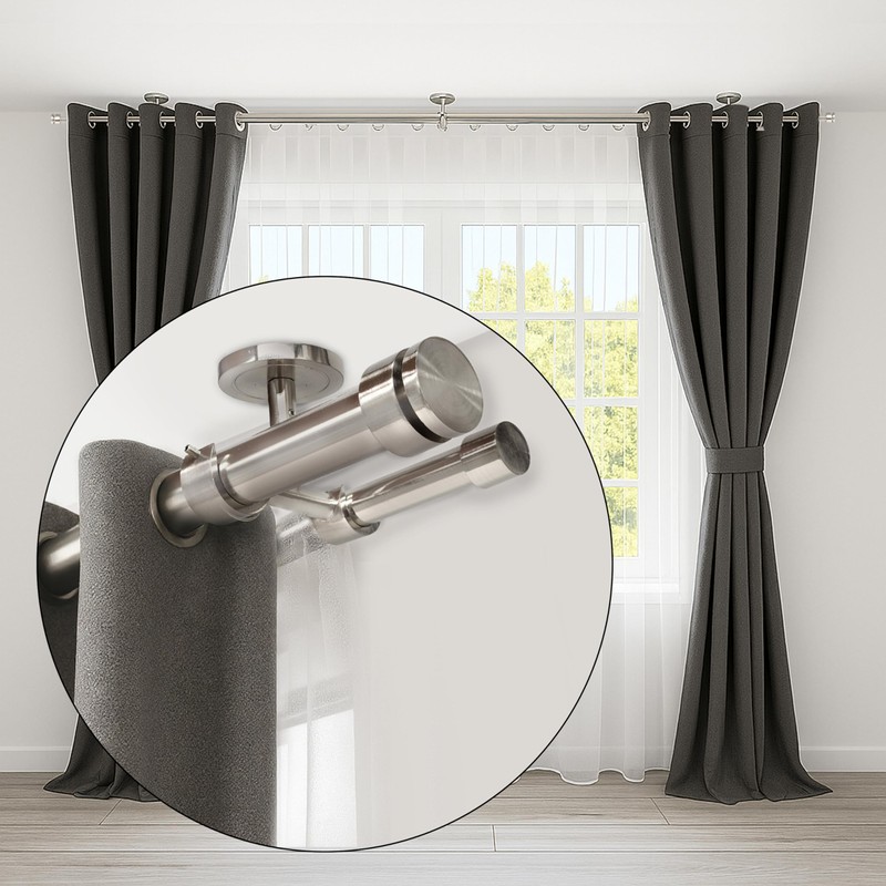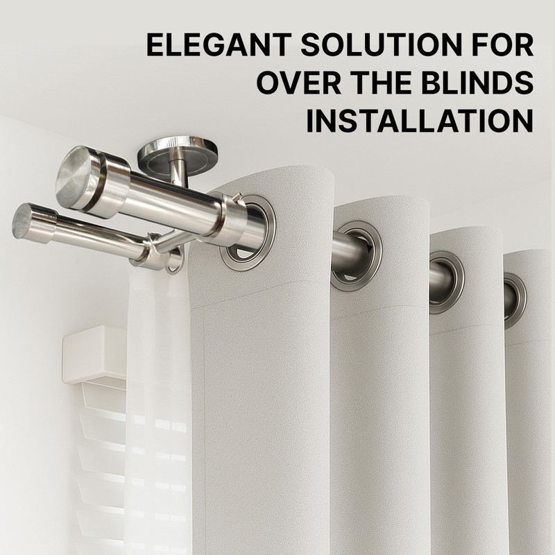 - Smart Over-the-Blinds Installation - maximize space and style with a ceiling mount double curtain rod that fits neatly above vertical or horizontal blinds — perfect for modern interiors.