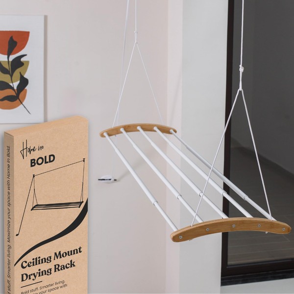 Ceiling Mounted Drying Racks for Laundry-Space-Saving Ceiling Clothes Drying Rack-Pulley Drying Rack-Wood, Metal, Ceiling Clothing Rack-Ceiling Mount Drying Rack-Clothes Drying Rack Ceiling Mounted