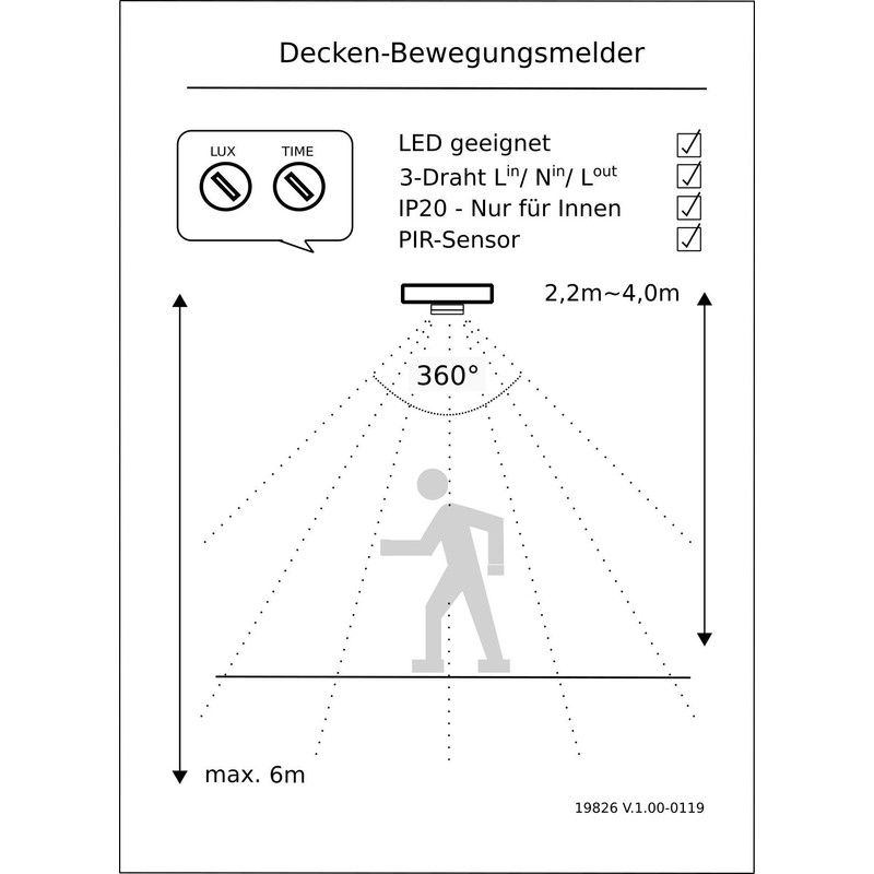 Ceiling Mounted Motion Sensor 360° 230V/1200W, 6m Detection, White