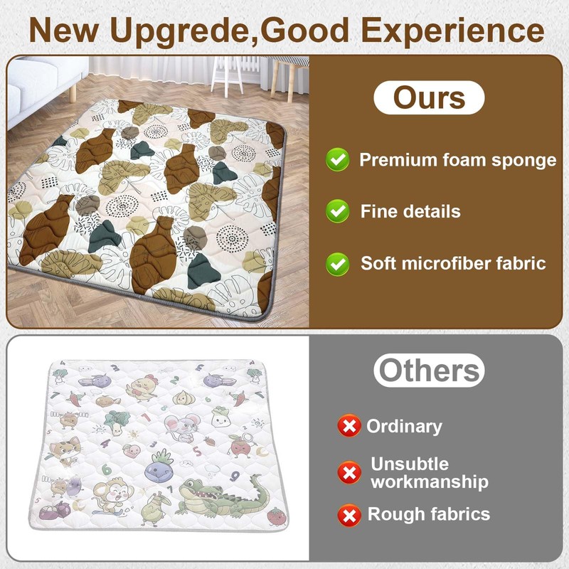 - 1.Premium Soft Thicker Foam: Our baby mat for floor is made of premium soft padding foam and microfiber fabric to ensure a soft and cushioned surface, providing a comfortable place for your little one to relax, play and work on their developing skills.