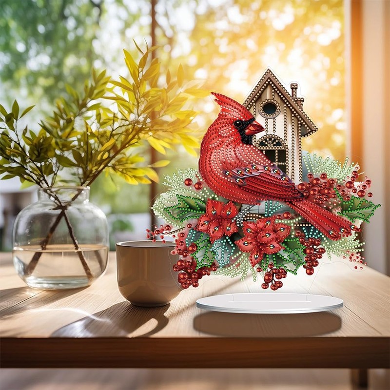 Ceitura Acrylic Table Top Diamond Art Painting Ornament Kits Cardinal Desktop Diamond Art Kits 5D DIY Diamond Art Tabletop Decorations for Adults Beginner