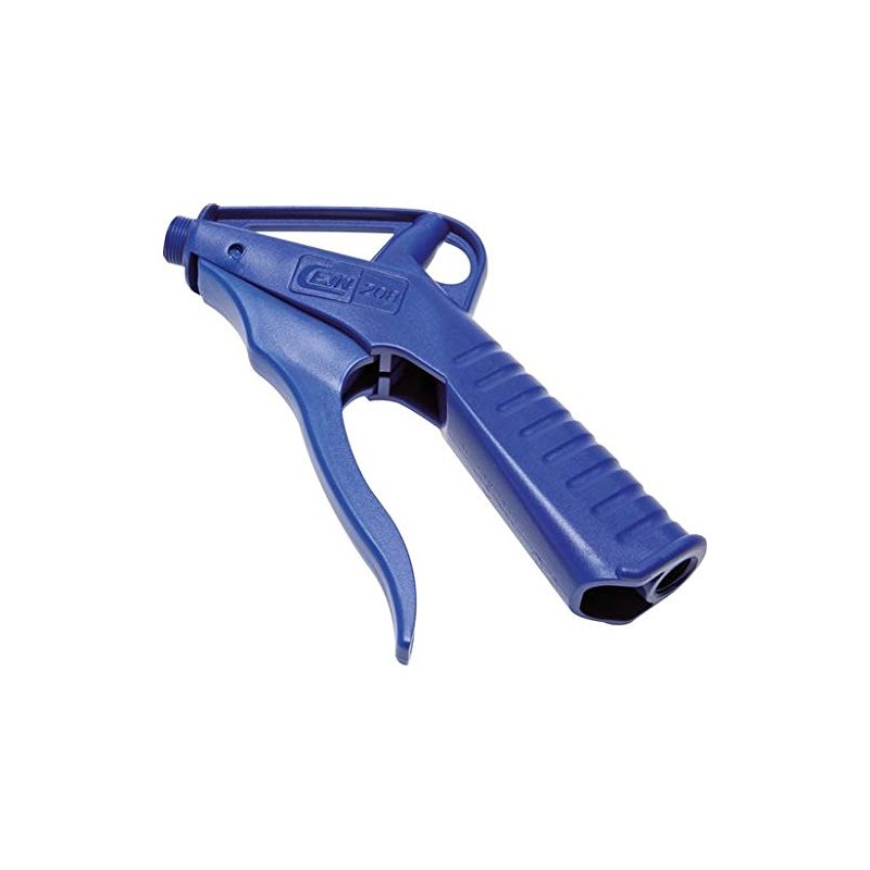 Advantages: warm feel thanks to plastic body, low weight, exhaust air volume can be dispensed particularly finely by means of the actuating lever, particularly quiet, soft air jet, wide range of applications thanks to interchangeable pipes and nozzle attachments.