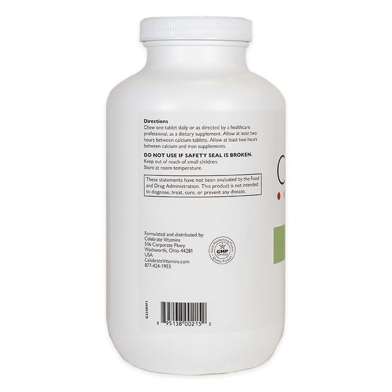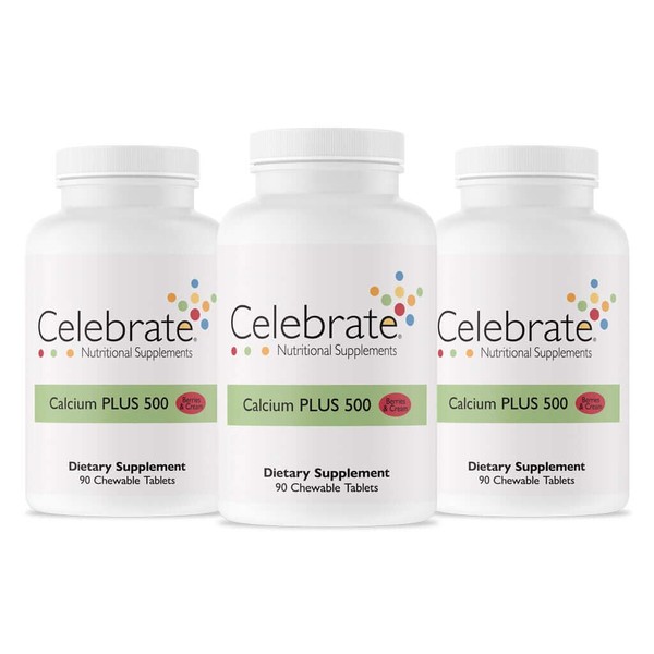 Celebrate Vitamins Calcium Plus 500 Bariatric Calcium Citrate with Vitamin D3 Chewable, 500 mg, Gluten-Free & Sugar-Free, Calcium Citrate for Bariatric Patients, Berries & Cream, 270 count