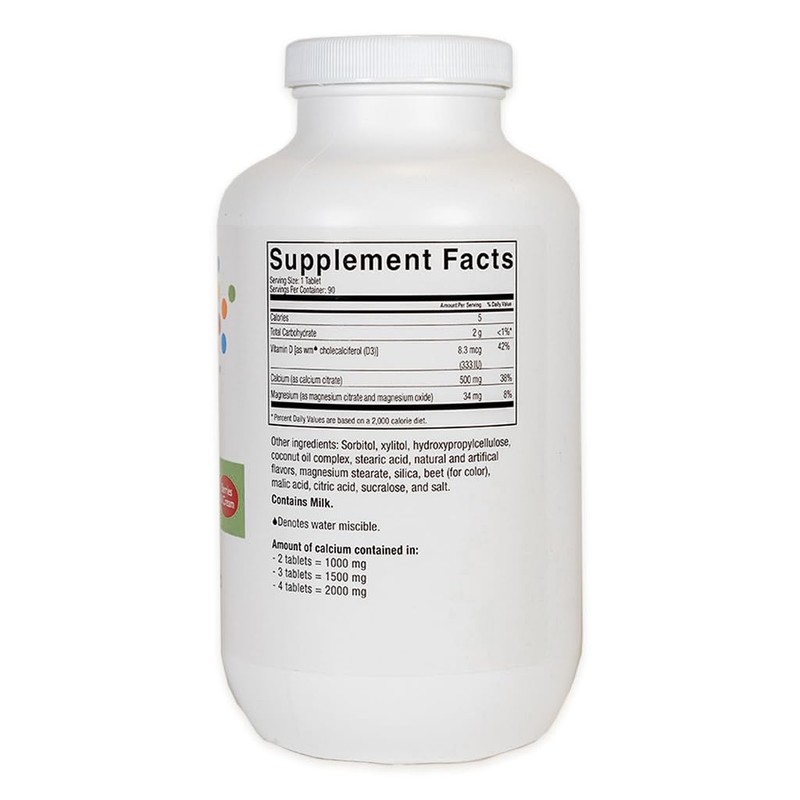 - 500 mg Calcium Citrate chewable tablets provides a highly bioavailable form of calcium citrate