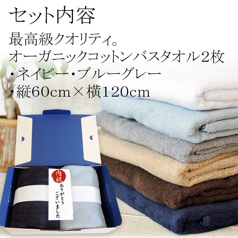 Celebration of Cheerfulness, Organic Cotton Towel, Set of 2 Bath Towels, Home Celebrations, Presents, Births, Marriages, New Constructions, Openings, Returns (Navy & Blue Gray)