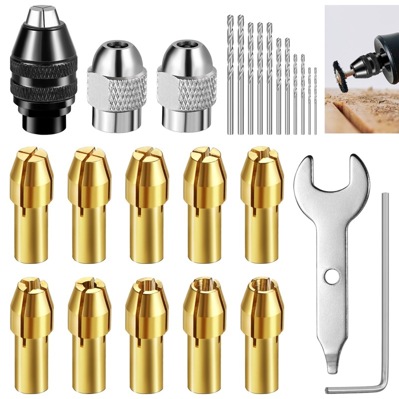 Celepoir 25 Piece Drill Chuck Collet Set with Accessories, Accessory Set for ...