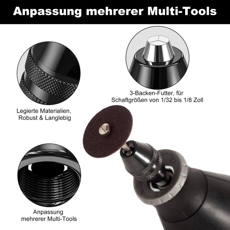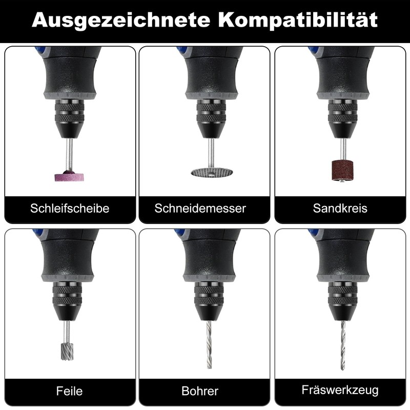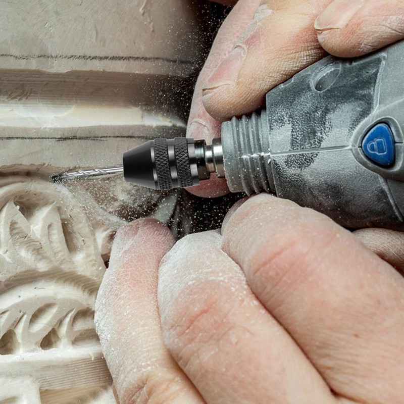 • Keyless drill chuck hexagon: mini drill chuck is made of a high-quality aluminium alloy, the built-in springs ensure a better connection and keeps the bit safer at high speeds; the quick-change drill chuck can hold a variety of mini drills from 1/32 inch to 1/8 inch size