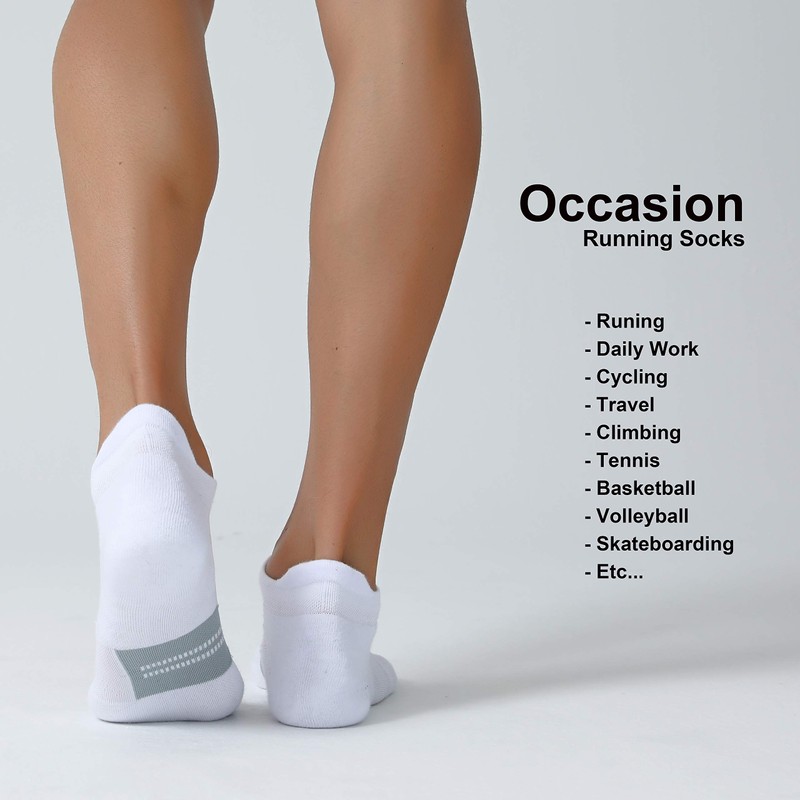 - Non Slip Off: Our tab socks have suitable compression in arch to protect you when you walk, jog and run and increase stability for a perfect fit. Elastic cuff tab can lock the heel and make sure our sports socks non-slip in order to prevent athletic sock sliding from your daily walking, running, cycling, hiking, tennis.