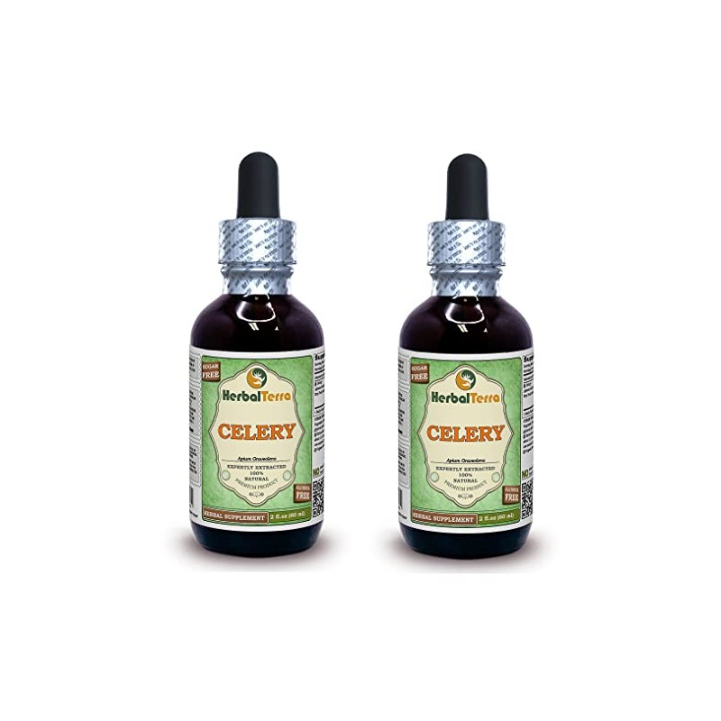 Celery (Apium Graveolens) Glycerite, Organic Dried Fruits Alcohol-FREE Liquid Extract (Brand name: HerbalTerra, Proudly made in USA) 2x2 fl.oz (2x60 ml)