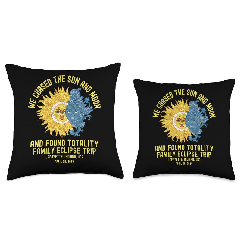 Celestial Astronomy Path of Totality Adventure Co. Lafayette Indiana Total Solar Eclipse 2024 Family Trip Merch Throw Pillow, 16x16, Multicolor