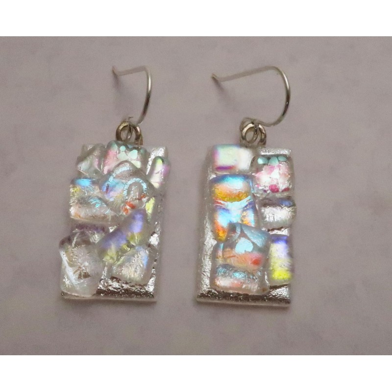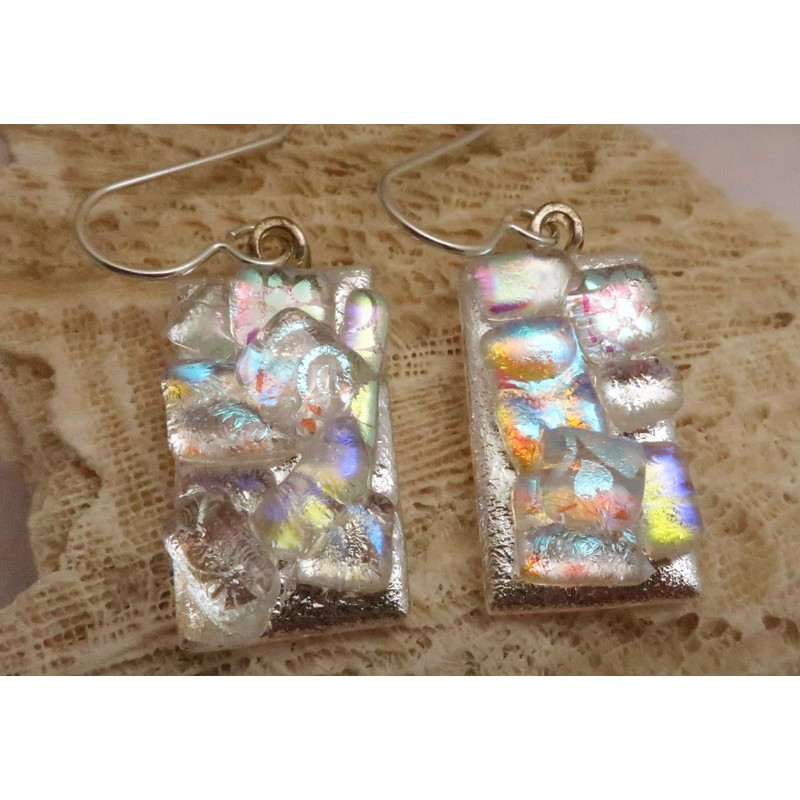 - Sterling Silver Transparent textured fused dichroic glass earrings