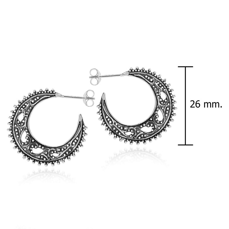 Celestial Vintage Style Crescent Moon .925 Sterling Silver Half Hoops Post Stud Earrings