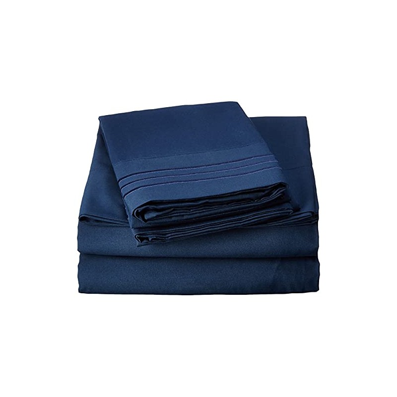 CELINE LINEN 1800 Series Hotel Quality Super Soft Wrinkle Resistant & Fade Resistant Beautiful Design on Pillowcases 4-Piece Sheet Set, Deep Pocket Up to 16inch, Queen Navy