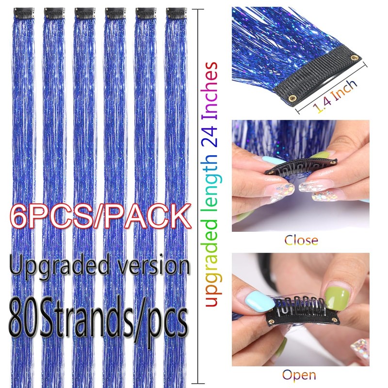 Package: Sapphire Blue Hair Tinsel 6Pcs(80 Strands/PCs,24Inch In Length.)