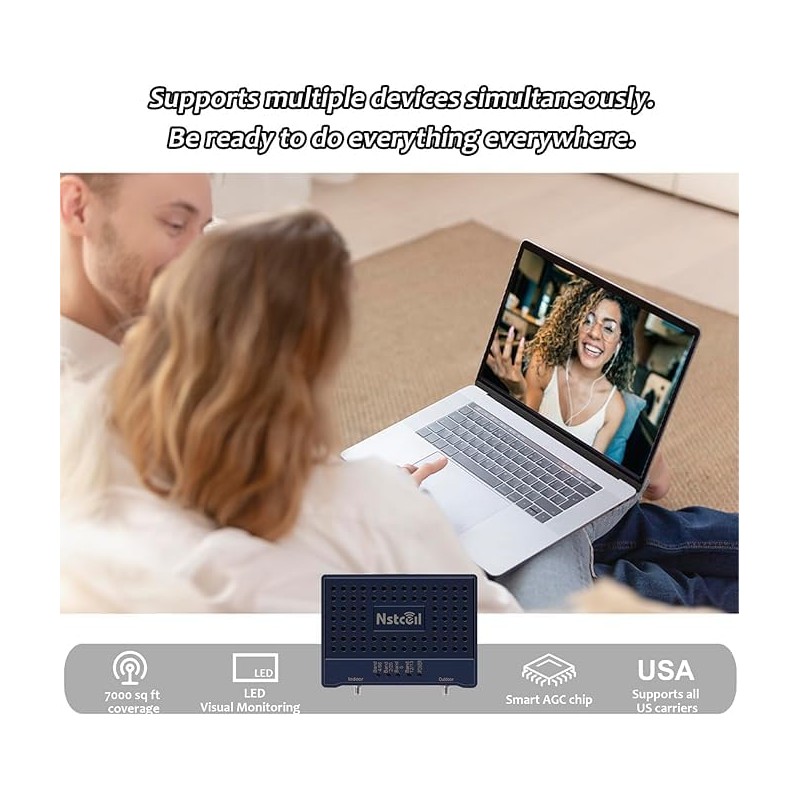 - Product Function— The cell phone amplifier boosts weak signal in 3-5 rooms, up to 7000 sq ft inside any home & office. This results in fewer dropped calls, improved battery life, higher audio quality, and faster data and streaming for All U.S. Cellular and many more And boosts 5G/4G LTE voice, text and data signals for all North American cell carriers, including Verizon’s 5G Nationwide data signals..Maximum Gain: 70 dB,Maximum Outpower: 17 dBm