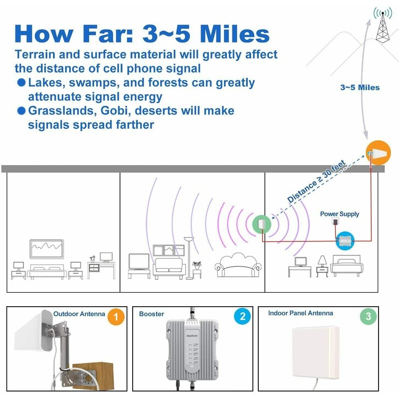 - The maximum gain of cell phone signal booster can reach 70dB, which allows you to enjoy less dropped calls, better voice quality, faster data speed and save battery and extend battery life in standby mode to 2 hours.