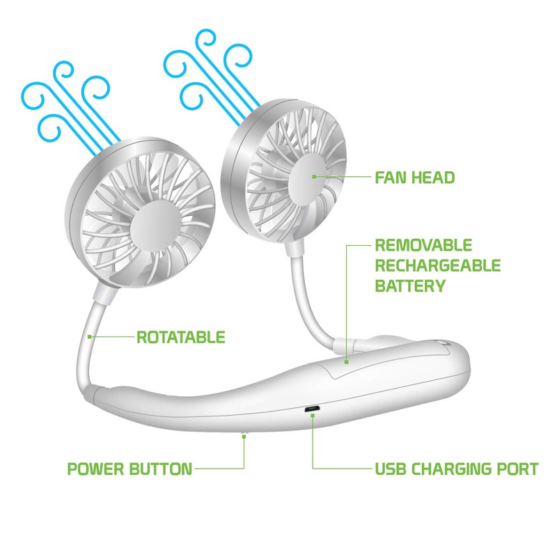 - Keep cool as you enjoy outdoor activities without the hassle of having your hands full. The hands-free neck fan allows you to continue with your day to day Activities without any inconvenience.