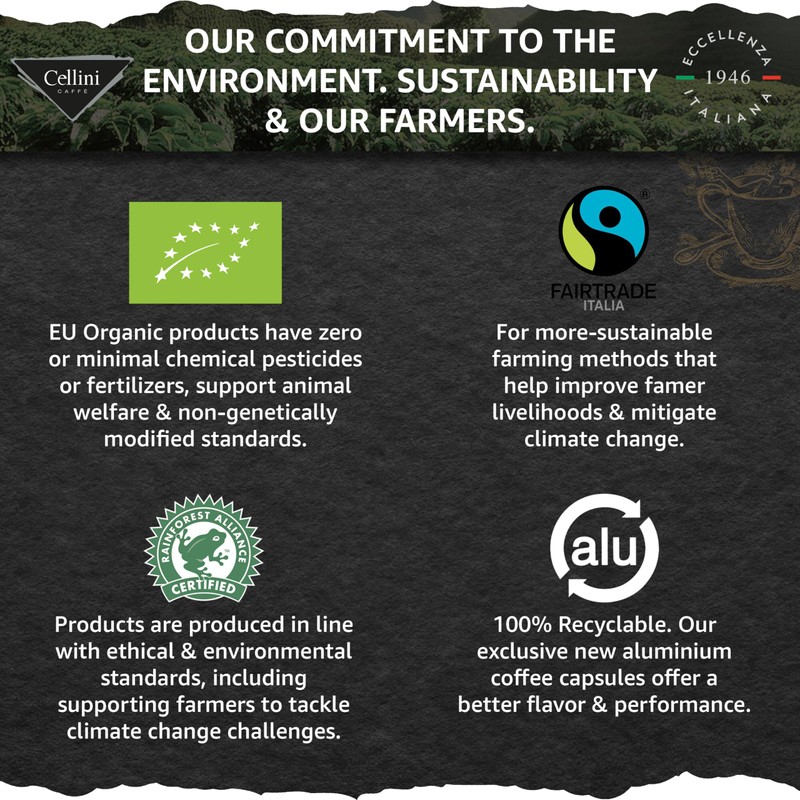- RECYCLABLE: Our exclusive aluminum capsules are 100% recyclable.