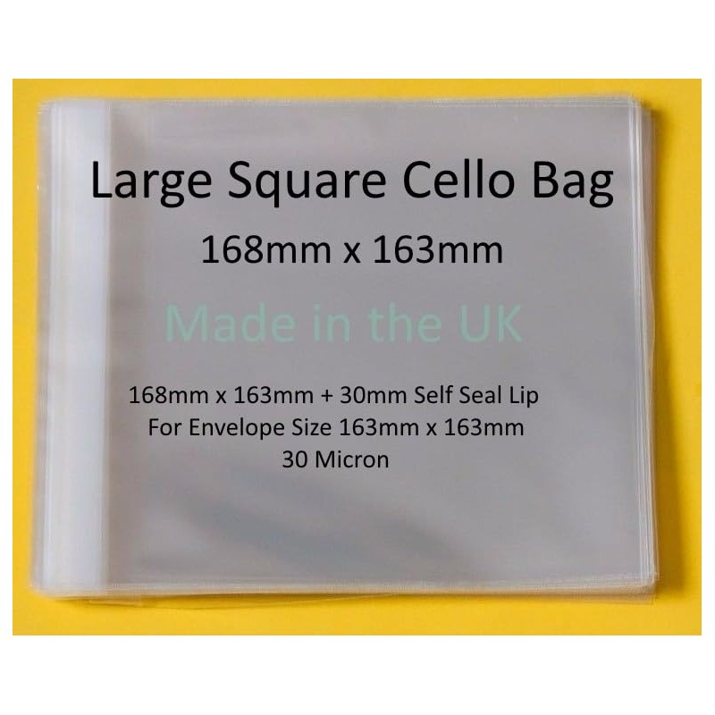 celloexpress 168mm x 163mm + 30mm Flap - Cellophane Greeting Card Display Bags 30 Micron Self Seal - Large Square - Pack of 250