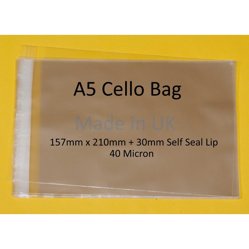 celloexpress A5 Cello - 157mm x 210mm + 30mm Flap - Cellophane Artist Size Cello Display Bags Self Seal - Medium Cello 40 Micron - Pack of 250