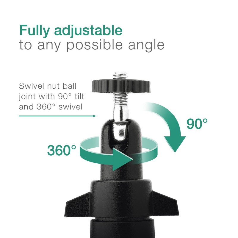 ✓ Adjustable joint mount: 90-degree tilt and 360° swivel