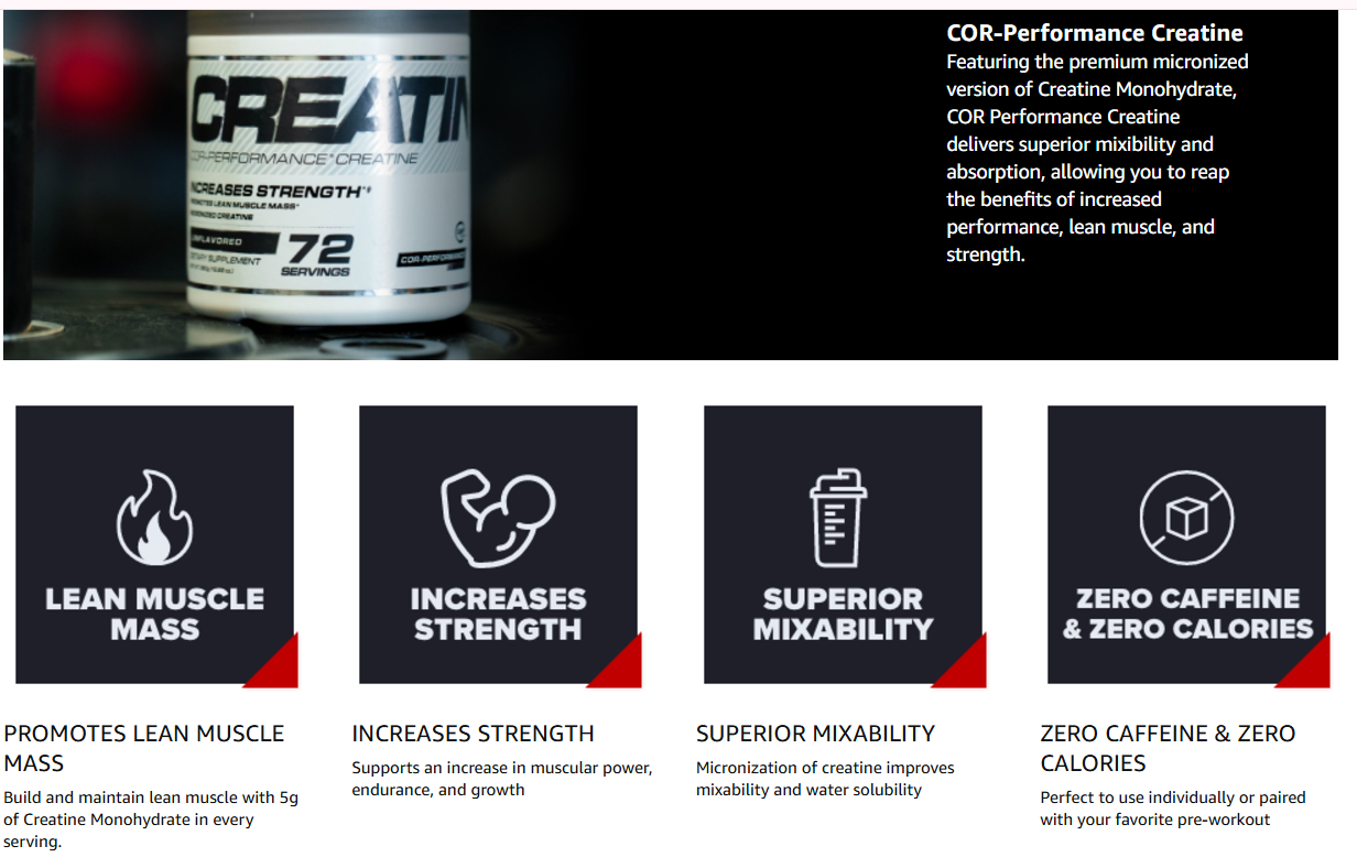 Cellucor Cor-Performance Creatine Monohydrate for Strength and Muscle Growth, 72 Servings