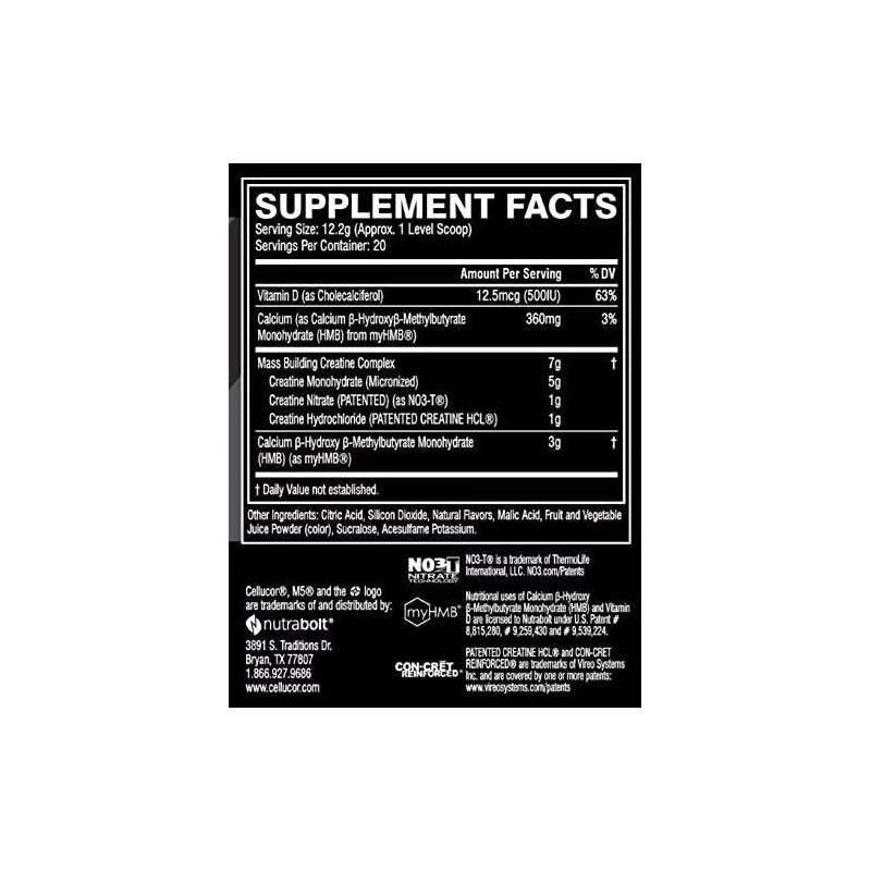 Cellucor M5 Ultimate – Fruit Punch has been reformulated to help build serious muscle mass^. This fully transparent, cutting-edge, stimulant-free formula combines Cellucor’s mass-building creatine complex with patented myHMB® to support your athletic goals. Choose Cellucor M5 Ultimate – Fruit Punch as in addition to your muscle gainer workout supplement plan.