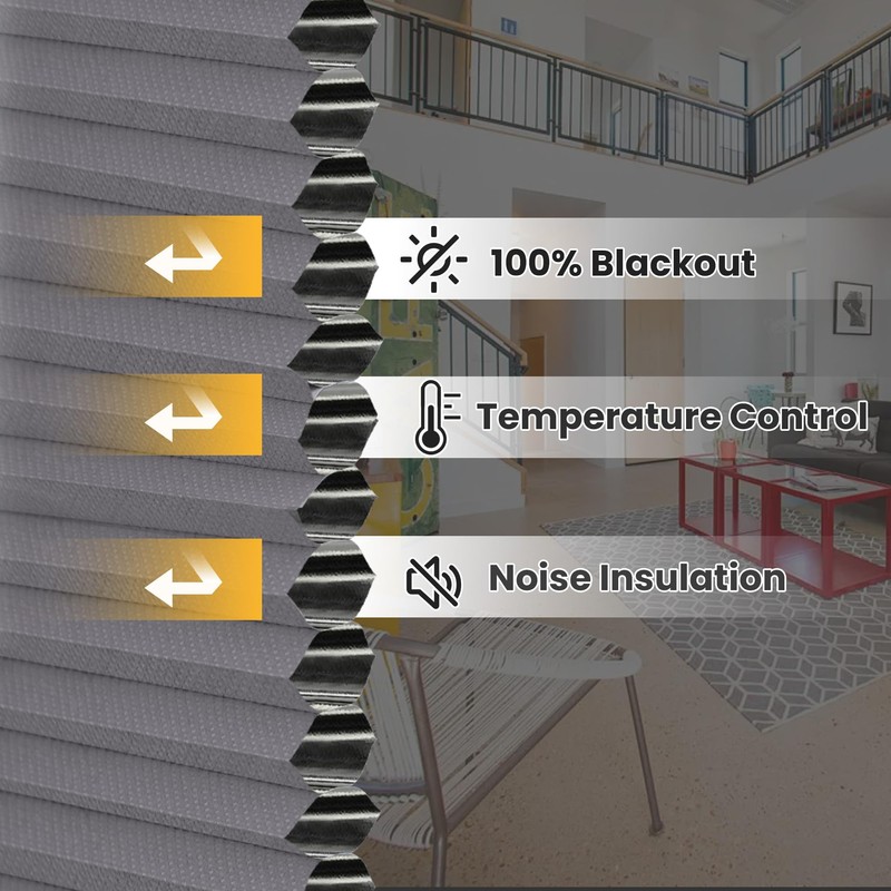 - INSULATION & ENERGY SAVING: Built-in environmentally friendly aluminum foil coating inside the honeycomb makes the insulation more effective. Heat insulation in summer while blocking UV rays from the sun, and help insulate the room from cold air in winter, creating a comfortable environment inside the house.