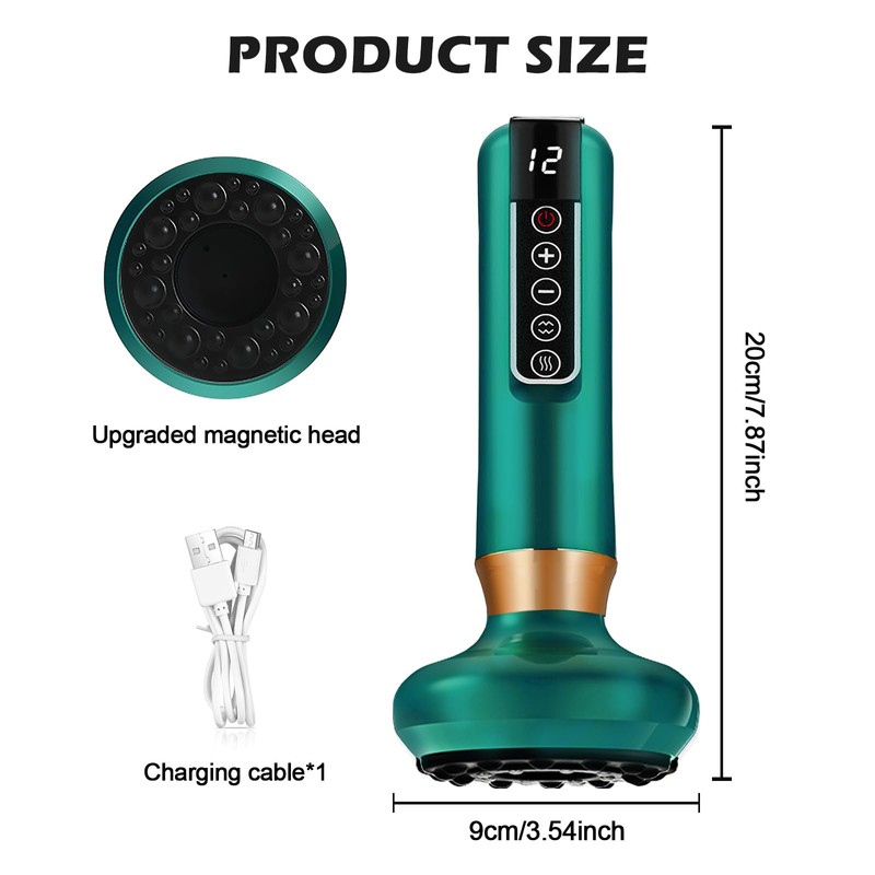 • 2-in-1 Schröpfgerät mit Gua-Sha-Funktion: Dieses elektrische Schröpfgerät vereint traditionelle Schröpfmassage mit moderner Gua-Sha-Technologie. Durch innovative Schabbewegungen und Druckentlastung auf Knopfdruck wird die Anwendung besonders komfortabel gestaltet – ideal zur Förderung des Wohlbefindens.