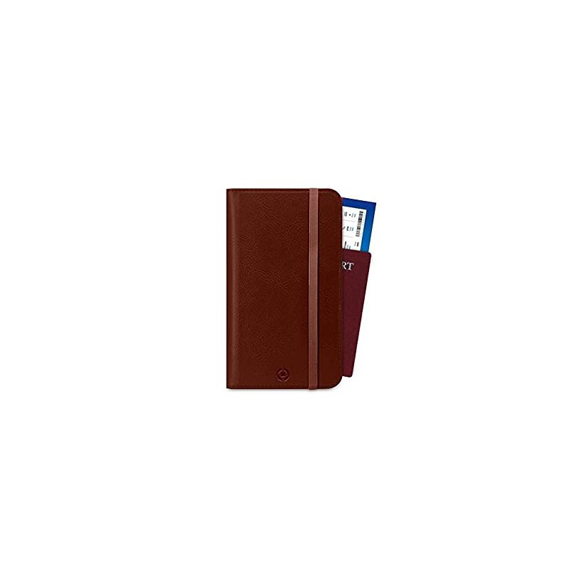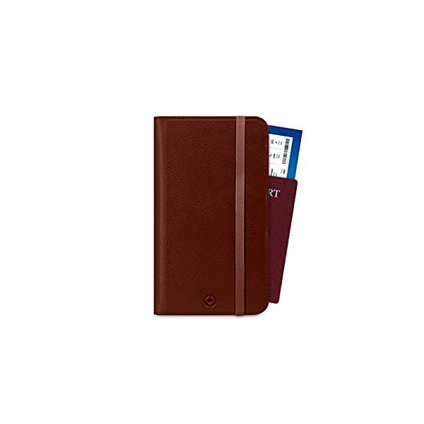 Celly PASSPORTDBR Travel Passport Holder Useful Travel Accessory with Magnetic Closure and Pockets for Documents, Cards, Cash and Smartphones, Brown Faux Leather